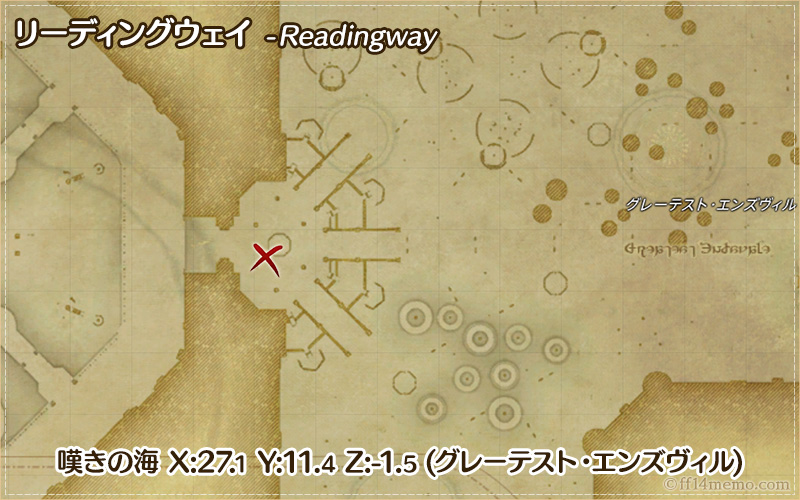 - 嘆きの海 X:30.7 Y:11.6 Z:-1.7 (グレーテスト・エンズヴィル)