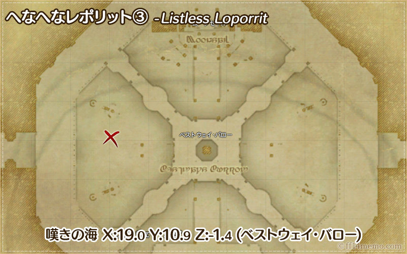 - 嘆きの海 X:12.8 Y:6.6 Z:-1.7 (キャロットリウム)